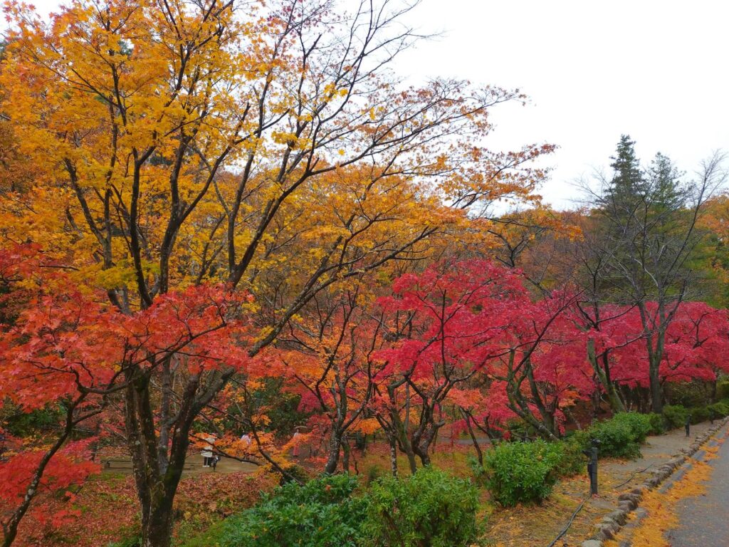 さて、実際にはなんとか雪に当たらず曇り空でした。紅葉のほうは見事な色づきできれいですね!