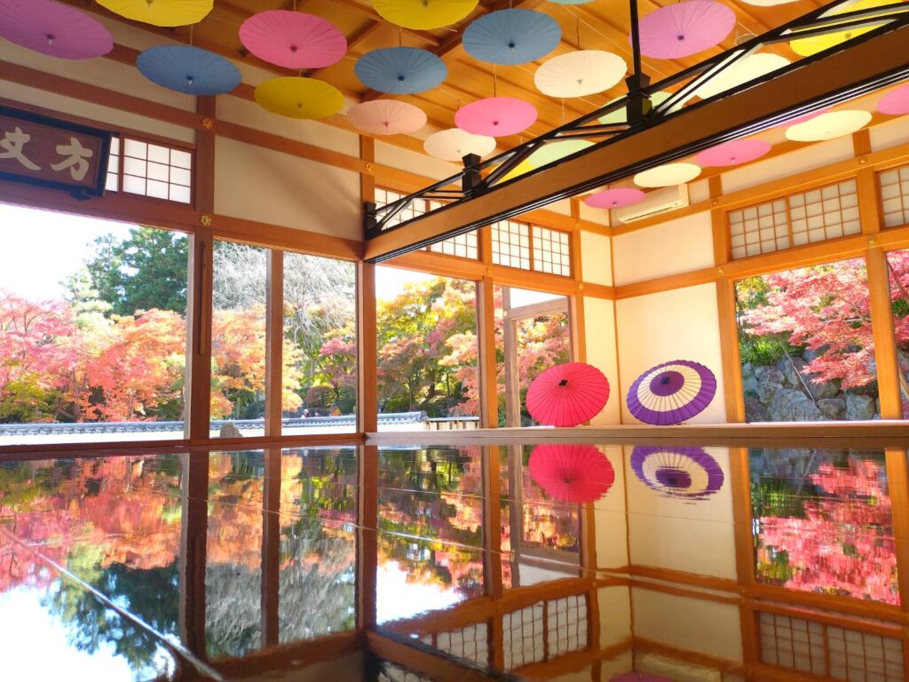 宝徳寺の紅葉もまだ早いかと思っていましたが、かなり色づいています。また、きれいに磨かれた床に紅葉が映し出され、ここにも沢山のお客様が訪れています。