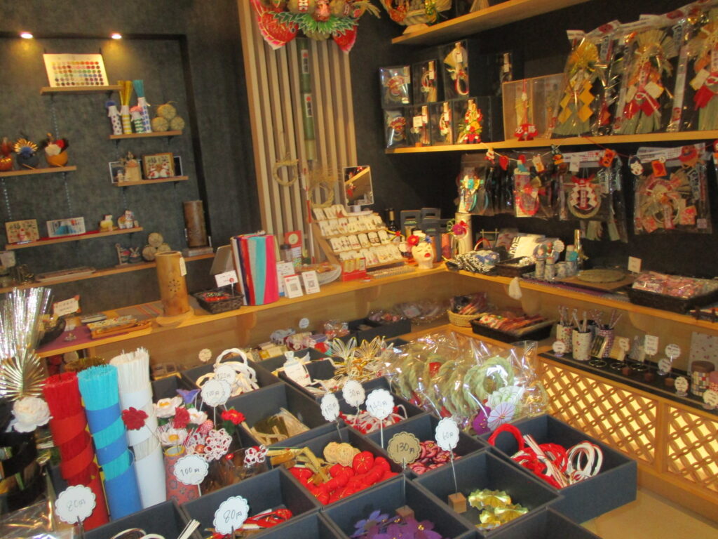 正月飾り以外に和雑貨や自家栽培の自然農法コシヒカリを販売し、水引きやお正月飾りの手作り体験も行っていると聞き、珍しい体験が出来ると思い、コースに入れてみました。展示されている作品の数々も大変美しいものばかりで見入ってしまいます。