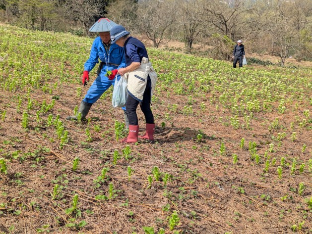 塩沢江戸川荘の裏山は山菜の宝庫、しゃがんで手を伸ばすだけでふきのとうがたくさん採れ、間もなくするとこごみ、わらび、ふきと次から次への移り変わります。また、ところどころにカタクリの群生も見られ喜んで頂けました。