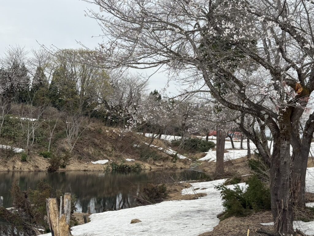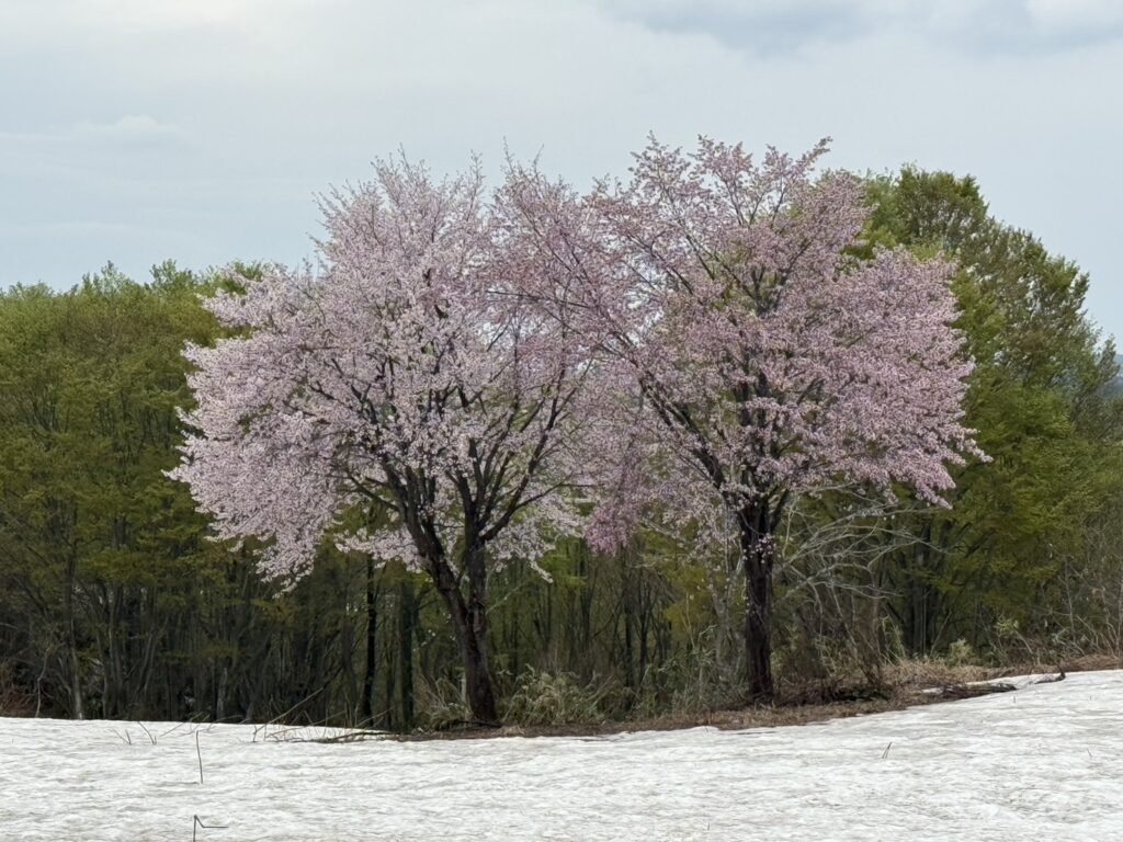 今年はいつもと様子が違い、ソメイヨシノの花数がとても少ないのです。過去にご覧になったことのあるお客様も今年の景色にはややガッカリしまして。前日のニュースで福山峠の雪上桜が取り上げられおりインタビューをうけた来訪者も『想像以上にひどかった』と嘆いていましたね。